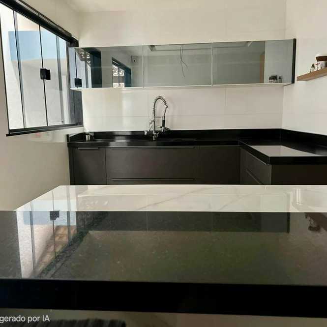 - Cozinha moderna com armários planejados e ilha