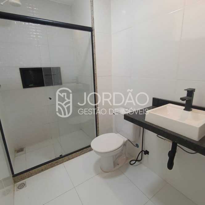 - Banheiro social com acabamento moderno.